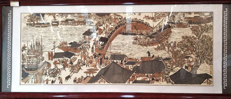 就拿海增粮画的创始人张海增来说吧,他出生于河北省馆陶,1998年毕业于山东菏泽美术学院。丰富的美术知识,只是他创作粮画的基础而已。为了研习粮画,他不断专研我国粮画历史,不断向为数不多的我国仅存的粮画艺人取经,不断学习、探讨,才练就了粮画创作本领。为了把祖国民间粮画艺术发扬光大,有远见卓识的他,深知凭他一个人的力量,是远远不够的。于是,他开始筹建“河北馆陶海增粮艺有限公司”,不断招贤纳士,把有粮画创作热情并有一技之长的贤士招入公司入职。从2010年公司成立的短短不到三年的时间里,他和公司的艺人一起,就创作出了《胡服骑射》、《品味幸福》、《清明上河图》等一大批艺术含量颇深的粮画艺术作品。他们的作品不仅在国内名声大噪,多家媒体争先报道,而且获得了巨额的经济效益。年成交额达400至500万元之间。2012年,光就一幅《清明上河图》,就以6万美元的高格,被美国的一位游客抢购买走。