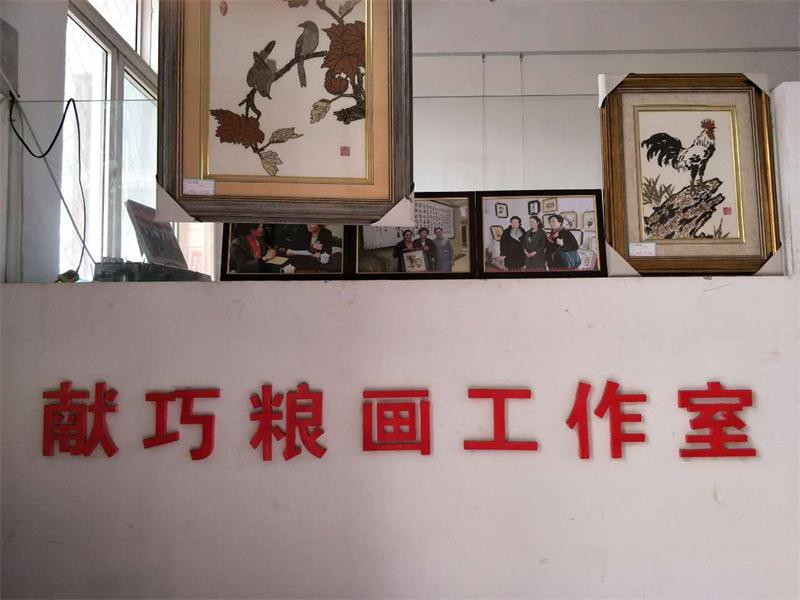 记者信步推门来到了另外一家名叫“献巧粮画工作室”的院落,主人师献巧热情地接待了记者,并讲述了她自己粮画工作室的运行状况。她满意地对记者说:“我这间工作室虽然很小,但也安排了4个人就业,一年的收入不菲。我们创作的粮画,质量和艺术水平很高,曾经受到全国政协委员李玉玲的高度赞赏!”