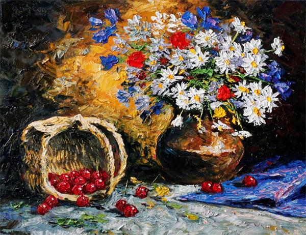 俄罗斯是油画艺术大国,诞生了许多世界闻名的画家。此次参展的俄罗斯油画有尤金·安德烈的静物写生60x120cm尺寸的“翠菊”,70x90cm尺寸的“温暖向日葵”,60x120cm尺寸的“花束”以及写生画60x120cm尺寸的“清晨”,60x120cm尺寸的“晚霞”和80x150cm尺寸的“夜晚”等作品,展现了俄罗斯当代油画的风采。