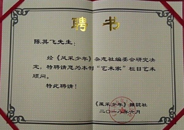 陈其飞的绘画成就,越来越来越显赫,先后被《盐阜大众报》、《盐城晚报》、《盐城新闻网》等媒体宣传报道。国际媒体《凤凰新闻社》,也在网站上做过报道,他的绘画成就,已经被越来越多的国内外友人所认知和欣赏。