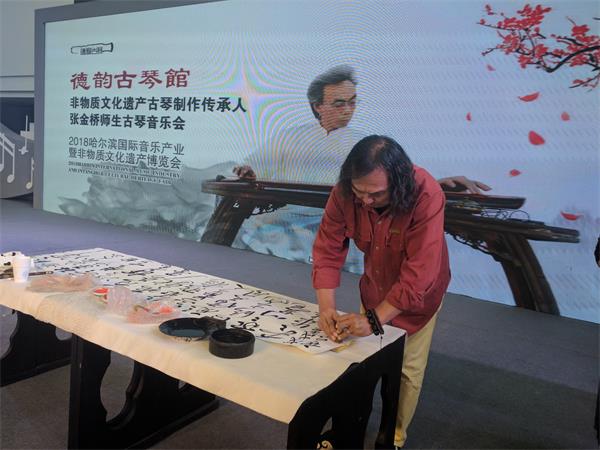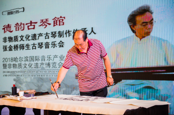 一场别开生面的琴书雅韵,与古人对话的艺术盛宴在c区的主舞台现场上演。由黑龙江德韵古琴文化研究院院长、黑龙江德韵古琴创始人、古琴制作非物质遗产传承人张金桥先生,北京紫禁城书画院院长、中国国家博物馆特约画家贾玉富,中国书法家协会会员、宜兴市古琴协会会长戴静波,哈尔滨书画院院长、黑龙江省书协理事王显君,黑龙江经济报编委、黑龙江省美协理事刘纯等几位大师共同完成,演绎了一场复古的文化盛宴,吸引了众多观众驻足。