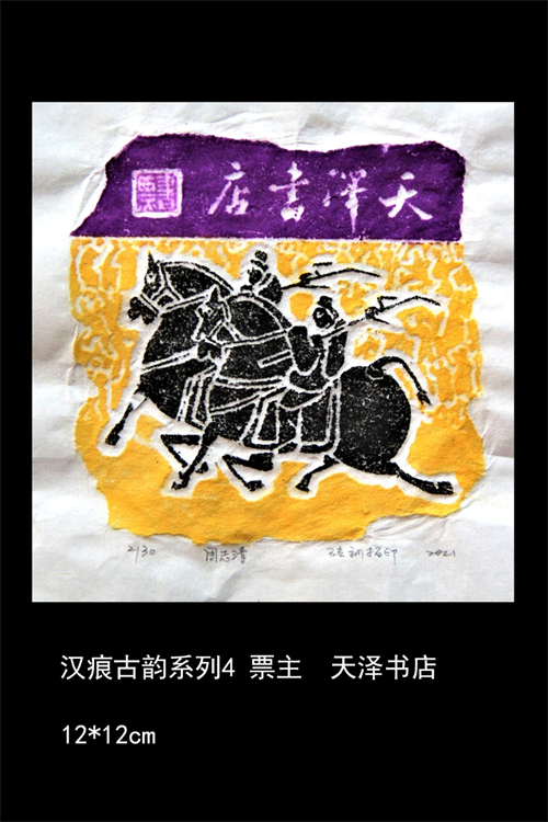 1990年开始主攻砖刻拓印版画,坚持三十多年,创作了大量砖刻拓印版画作品,砖刻拓印版画用篆刻方法刻制,讲究冲、切刀法,用宣纸拓印,刀痕、砖痕都能清晰体现,可以一版多色,常用书法文字做背景和衬托,集绘画、书法、篆刻于一体,手拓时灌注了情感,别有一番韵味,具有浓郁的民族特色。