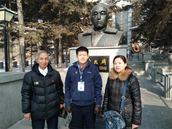 马格青先生(中),抗战时期宾县特支书记孙保泰的孙女孙玉华女士(右)