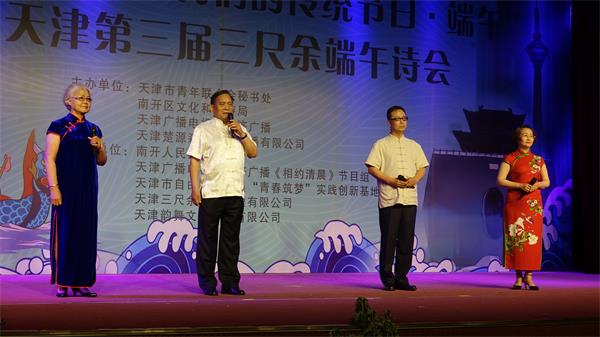 时逢端阳五月天,炎黄后辈思屈原。6月12日下午,由天津市青年联合会秘书处、南开区文化和旅游局、天津广播电视台经济频道、天津楚源森泰文化传播有限公司共同主办,由南开人民文化宫、天津广播电台经济频道《相约清晨》节目组、天津市自由职业人员“青春筑梦”实践创新基地、天津三尺余餐饮管理有限公司、天津韵舞文化传播有限公司承办的“书香中国诗意端午·南开区2018“我们传统的节日——端午”暨中天津三尺余端午诗会在南开文化宫隆重举行。