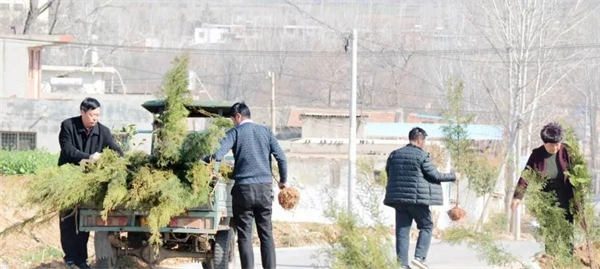 常川村边道路两旁,来自社会各界爱心人士和常川村村民一起扛苗散苗、挥锹铲土、栽树、盖土、浇水……现场一片热火朝天的景象。经过近2个小时的劳动,120多棵柏树在常川村头“安家落户”,一排排小树苗在风中摇曳,似乎对大家招手感谢。