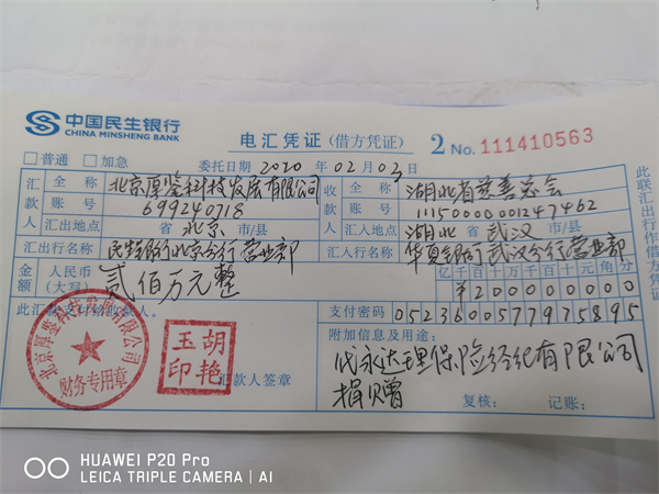 天灾无情,人间有爱。2020年2月3日,为响应党中央、国务院的统一部署,由永达理保险经纪有限公司股东北京厚鉴科技发展有限公司代为向湖北省慈善总会捐赠人民币200万元,用于一线医务人员和工作者抗击“新型冠状病毒感染肺炎”疫情。