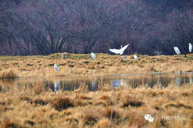 放眼望去,天桥岭林区苍翠欲滴,各种鸟类在林间筑巢嬉戏。环境优美,鸟语花香,人与自然,和谐相处。