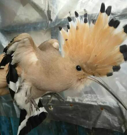 上河林场当地居民在自家养猪场菌地发现一只很像“仙鹤”的大鸟,及时送到了天桥岭森林公安局上河派出所。派出所民警推测,这只鸟很可能是国家保护动物,拿来小鱼喂它。经鉴定这是一只成年东方白鹳。目前,全球仅有不到3000只,通过勘察,这只东方白鹳没有明显外伤,只是身上带有寄生虫。及时将这只东方白鹳送到动物救治站。