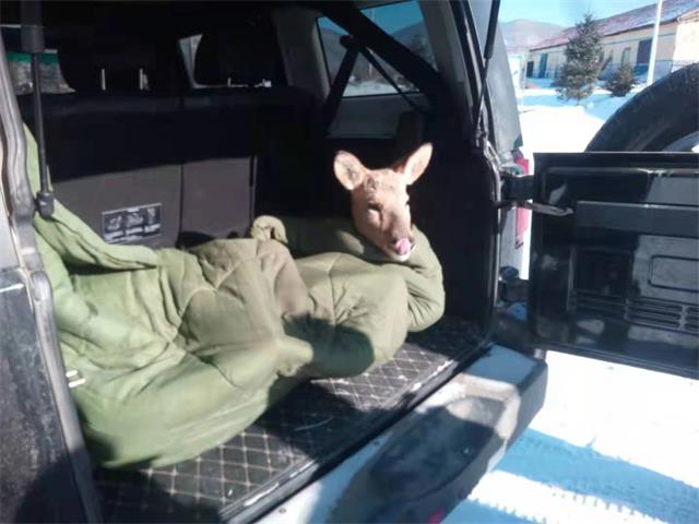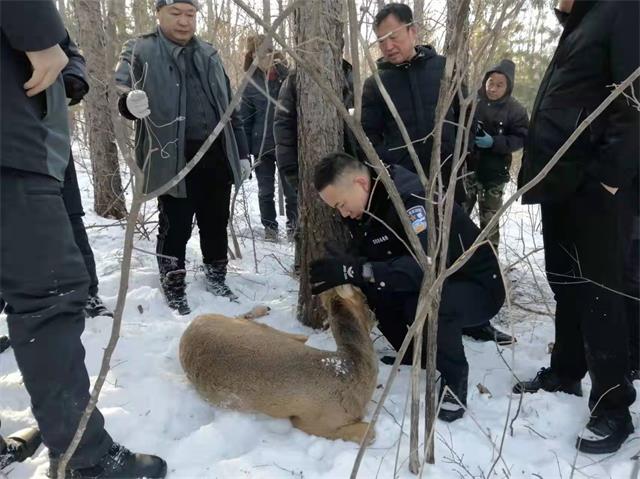“东北 神兽”傻狍子“中圈套” 警民联合紧急救助