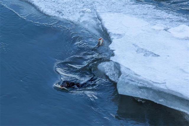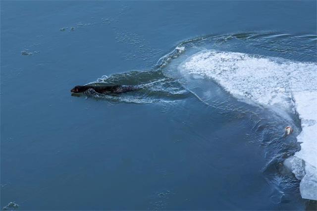 12月3日,一名钓鱼爱好者在天桥岭嘎呀河畔钓鱼时,忽然发现有一只不知名的野生动物在水中游来游去,并不断地潜入河水里抓鱼吃,便立即把情况报告给了天桥岭森林公安分局。分局领导立即通知有关人员,到现场进行拍摄查看,视频显示,落雪后,嘎呀河的河道渐渐封冻,偶尔温泉涌出的地段,还会有明流溅溅。小家伙在嘎呀河水面上悠闲地游动,一会潜入水底,一会游出水面,嘴里叼有一条河鱼,不停地啃食,待吃饱后又潜入水底,捕了十条鱼左右,放在旁边,然后来回几趟,把捕食的河鱼运回不远处的窝内,那认真的小模样真的太可爱了。