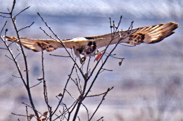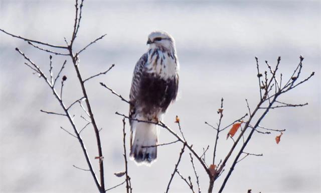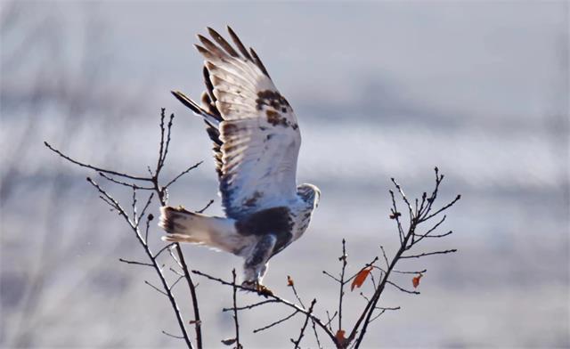 12月11日,吉林省公安厅森林公安局天桥岭森林公安分局民警在巡护途中发现了罕见的越冬鸟毛脚鵟。并用相机拍摄下来,发到朋友圈,引来众多网友的点赞和转发。