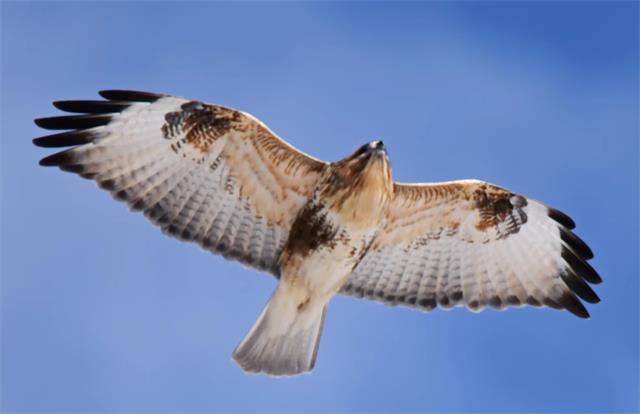 据了解,普通鵟又叫鸡母鹞,属于隼形目鹰科,体色变化较大,有淡色型、棕色型和暗色型三种,属于中型猛禽。主要栖息于山地森林和地缘地带,常在平原开阔地或平原附近的树林中翱翔,喜欢在白天活动,特别善长飞翔,每天大部分时候都在空中盘旋滑翔,翱翔时两翅向上举成浅V字型,短而圆的尾成“扇”字形展开,姿态极为优美。它主要以森林鼠为食,也吃蛙、蛇、野兔、小鸟等动物性食物。被列为中国国家重点保护野生动物名录,属于国家二级保护动物。