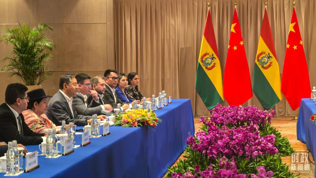 习主席会见玻利维亚总统阿尔塞现场。(总台央广记者潘毅拍摄)