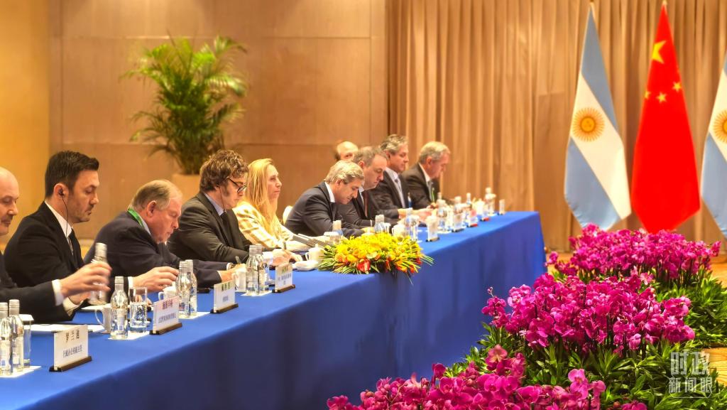 习主席会见阿根廷总统米莱现场。(总台央广记者潘毅拍摄)