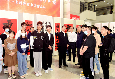 书法展由张成生倾情呈现,是集思想性、教育性、艺术性于一体的精彩展览。此次展览为期7天,参展作品共计130余件。以独特的艺术形式开展主题教育理论学习,是学习形式更加生动的一次尝试,也是学校师生推动主题教育走深走实的另一种实践拓展。观展中,学生们既提高了艺术素养,又领会了理论思想和书法艺术相结合的哲思情理,更激发了他们的民族自豪感、培养了他们的爱国主义思想情感。